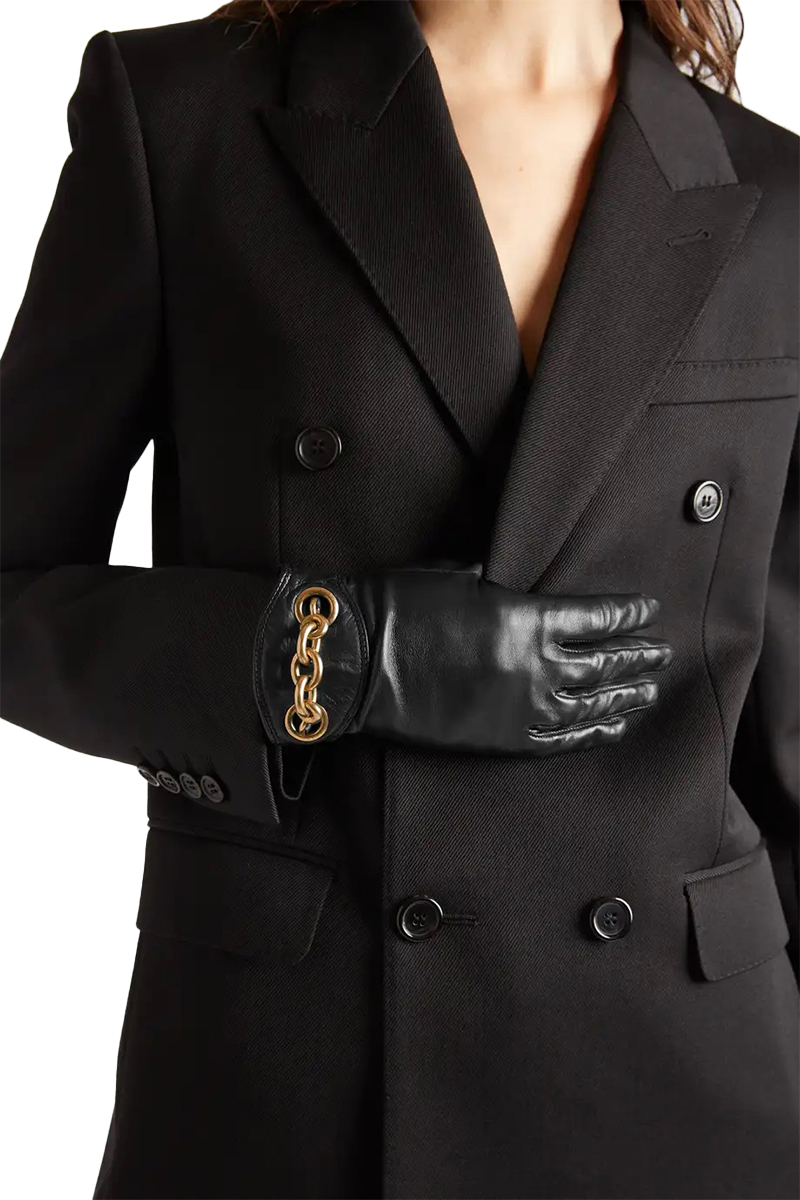 Ventura's gloves are made from supple leather and decorated with chunky gold chains at the cuffs. They're fully lined in silk so they feel exceptionally soft against the skin and come in a presentation box, making them a perfect gift.